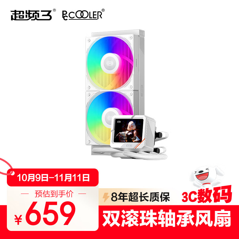 超频三(PCCOOLER)北境GT240 ARGB 白色屏显一体式CPU水冷散热器/3.5吋液晶屏/自定义主题/支持1851/AM5