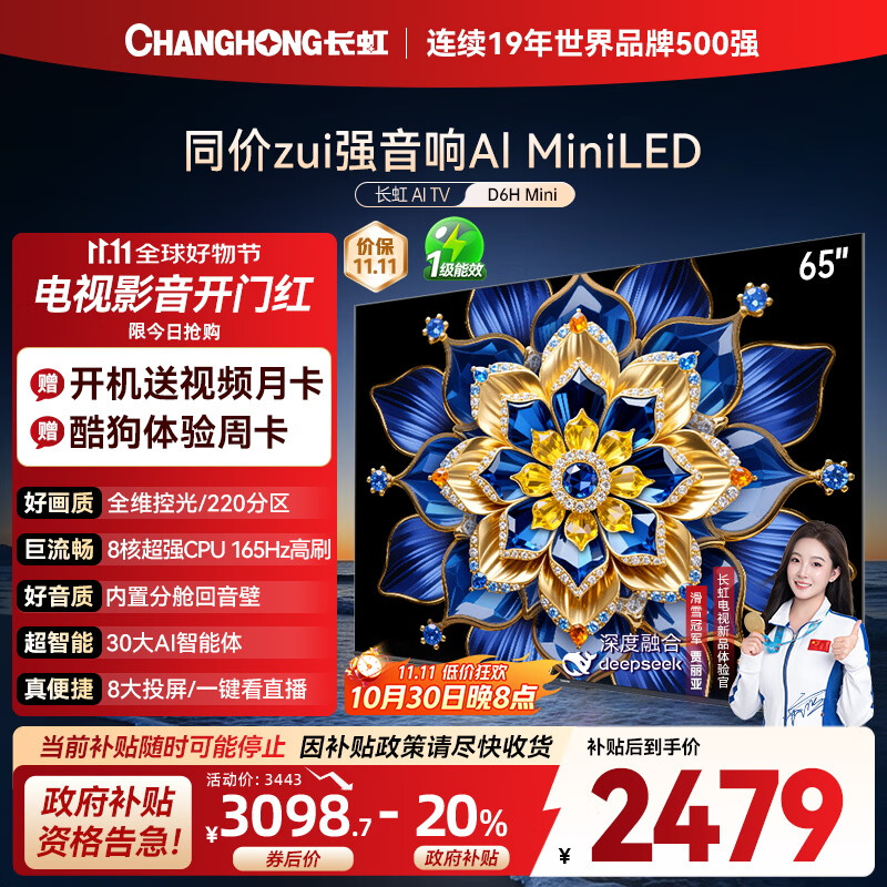 长虹电视65D6H Mini 65英寸MiniLED智能液晶平板电视机 一级能效 家电以旧换新国家补贴20%
