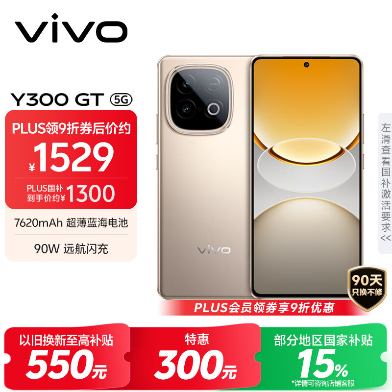 vivo Y300 GT 8GB+256GB 沙漠金 7620mAh超薄蓝海电池 天玑8400满血版 军工级耐用品质 AI手机