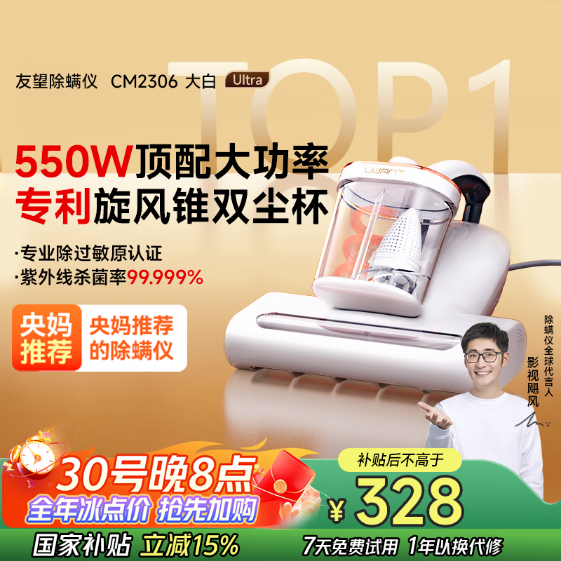 uwant友望大白ultra除螨仪【CCTV1推荐】热销TOP1 宠物除毛65℃高温杀菌除螨 床上吸尘器吸尘除螨一体机