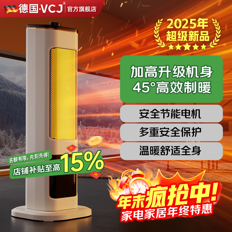 VCJ【取暖神器】立式取暖器石墨烯家用暖风机立式电暖风浴室热风机冷暖风扇电暖气节能电暖器卧室 【旗舰款】无死角送暖/安全保护