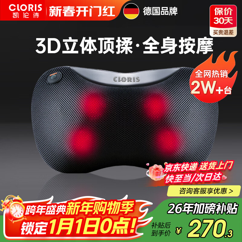 凯伦诗(CLORIS)德国颈椎按摩器 按摩枕热敷腰部按摩器 颈肩腰背部按摩仪车载 送老婆新年礼物 【插电款】黑色A601