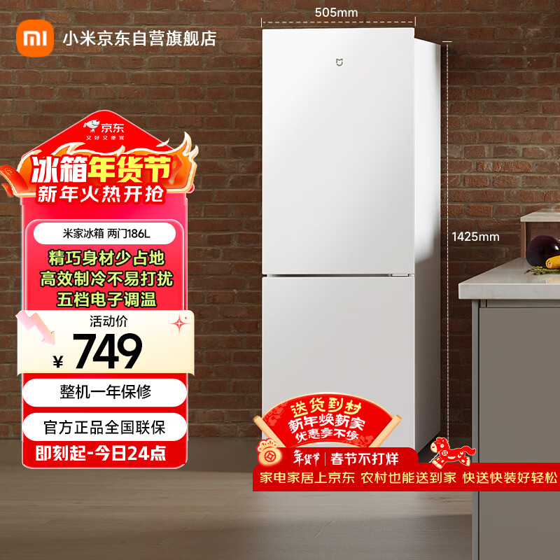 米家小米186L两门冰箱小型家用节能安静运行冷冻冷藏租房宿舍BCD-186MDM02
