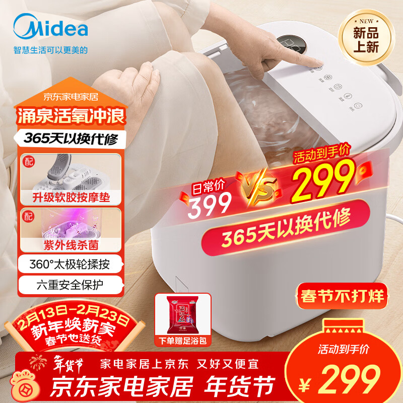 美的(Midea)泡脚桶按摩足浴盆加热保暖自动按摩暖脚洗脚盆杀菌泡脚盆恒温高深桶情人节礼物送男女友ZL305Max