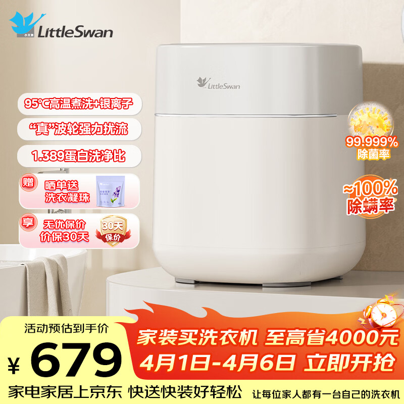 小天鹅(LittleSwan)0.5KG波轮内衣洗衣机全自动极地Mini 1.389洗净比高温煮洗冷热除菌小型迷你洗衣机TNB5-78E