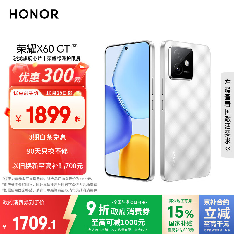 荣耀X60 GT 16+512 钛影银 骁龙旗舰芯片 6300mAh青海湖电池 荣耀绿洲护眼屏 国家补贴 AI 5G手机