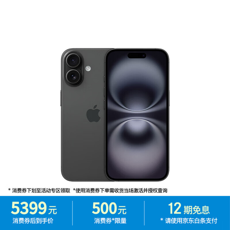 Apple/苹果 iPhone 16 256GB 黑色 支持移动联通电信5G 手机【返移动话费券】