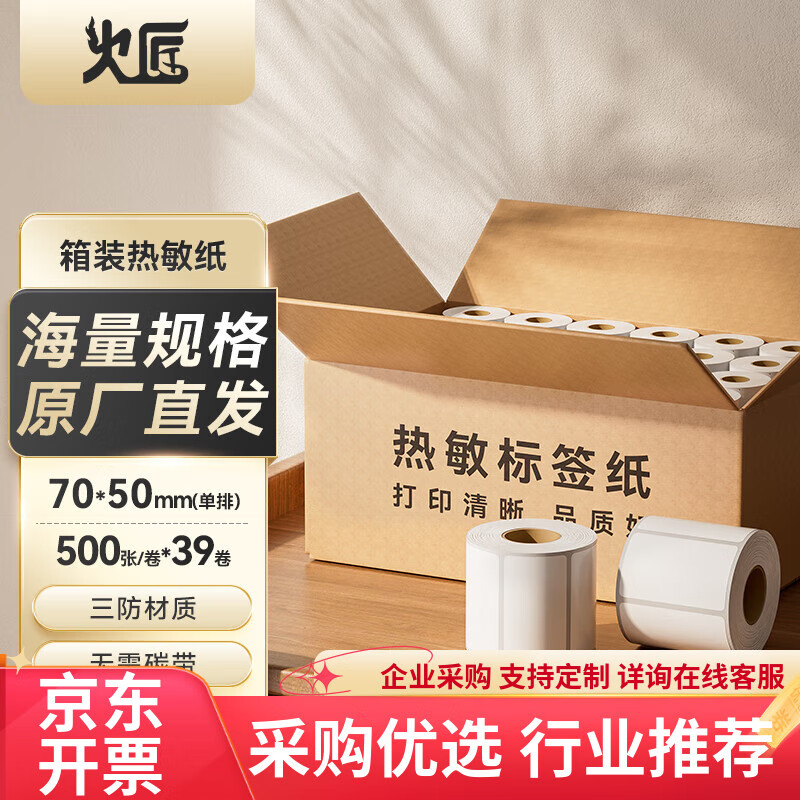 火匠箱装三防热敏标签打印纸 标签贴不干胶标签纸快递面单贴纸电子秤条码纸 70*50mm*500张*39卷
