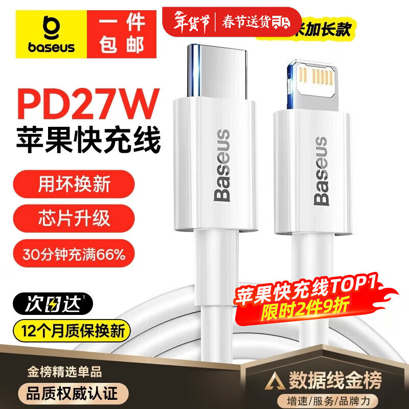 倍思【升级款】苹果数据线PD20/27W快充线 Type-C充电器线通用iPhone14Promax/13/12/11/8/X手机 1.2米-【PD20W苹果快充线】