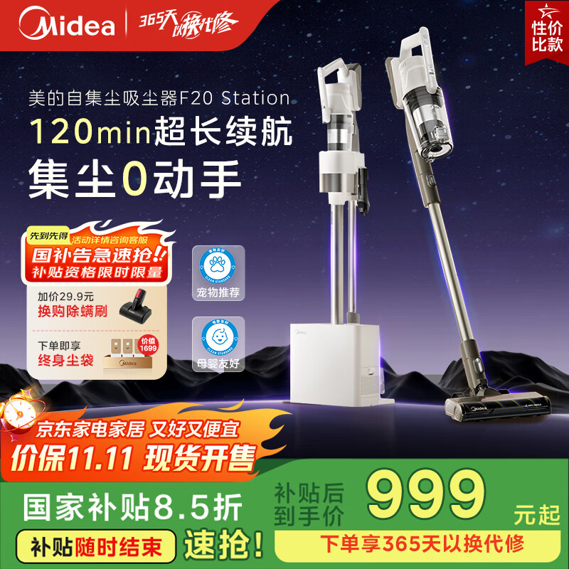 美的(Midea)吸尘器F20大功率超强吸力家用无线手持自集尘空间站绿光显尘宠物不倒灰【国家补贴】F20station