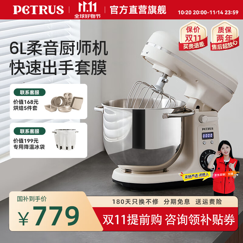 柏翠厨师机揉面和面打奶油一体全自动多功能搅拌直流轻音面包家用小型 PE4633 节日礼物 米白色 6L ( 咨询有大惊喜 )