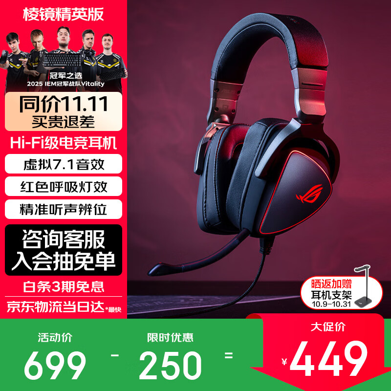 ROG棱镜 游戏耳机头戴式玩家国度 电脑电竞有线耳麦 ps5 棱镜精英版【至高享95折】
