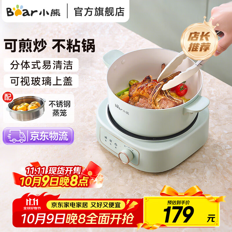 小熊(Bear)电煮锅电火锅小电锅火锅专用锅家用宿舍多功能锅一人用电蒸锅炖蒸煮一体电炒锅分体式小型1-2人 2.5L 【陶瓷油涂层】+蒸笼 DHG-D25G2