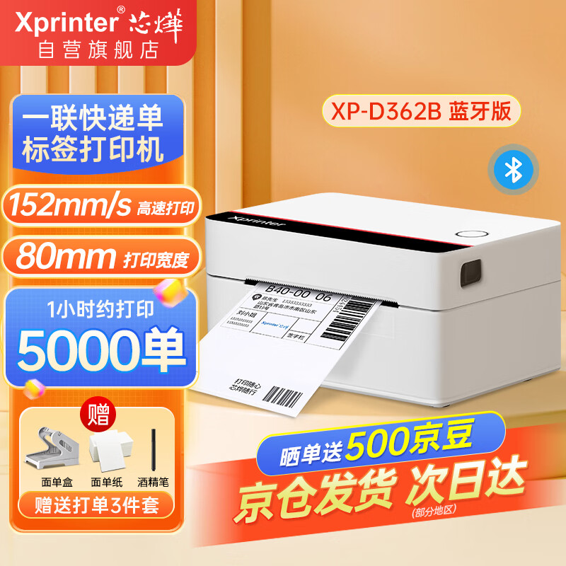 芯烨(XINYE)XP-D362B 快递电子面单打印机蓝牙版 热敏标签贴纸不干胶条码打单机 仓储物流单二维码一联单