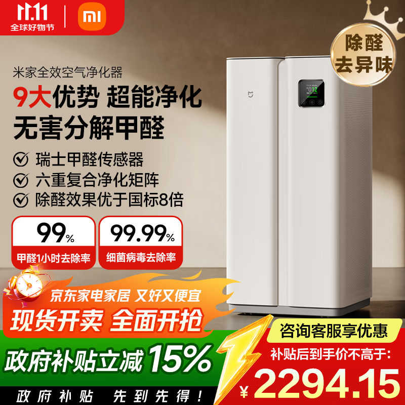米家【家电国家补贴】小米全效空气净化器 分解式除醛除菌雾霾异味智能数显