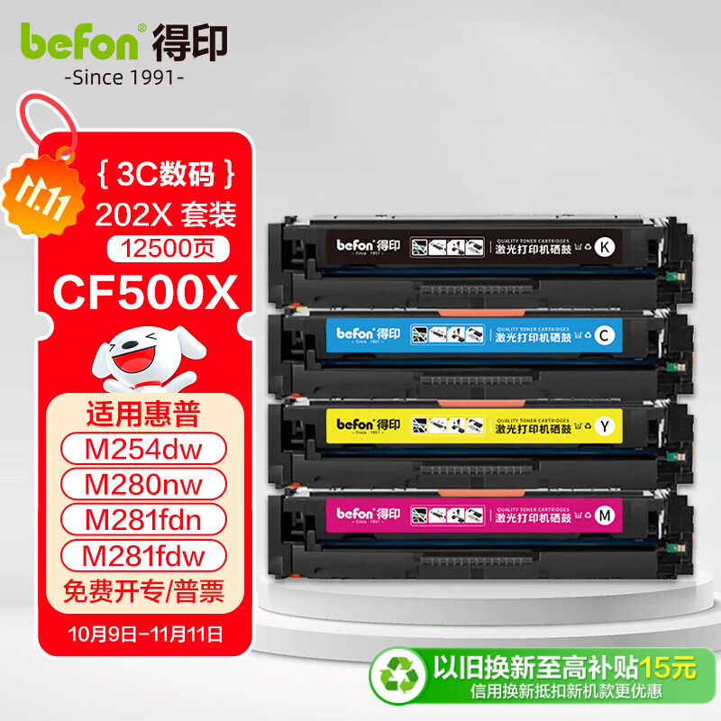 得印202a硒鼓适用惠普m281fdw硒鼓 m254dw m254nw m280nw m281fdn打印机墨盒带芯片大容量四色套装cf500a硒鼓