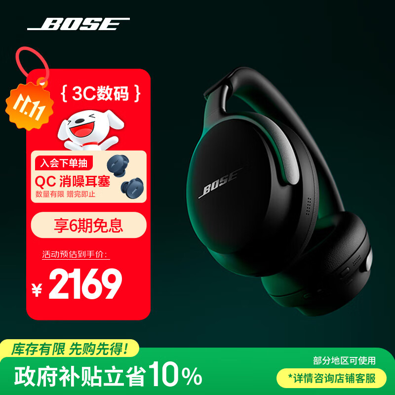 Bose【政府补贴】QuietComfort 消噪耳机Ultra-经典黑 头戴式无线蓝牙降噪 沉浸音乐体验 双11购物推荐