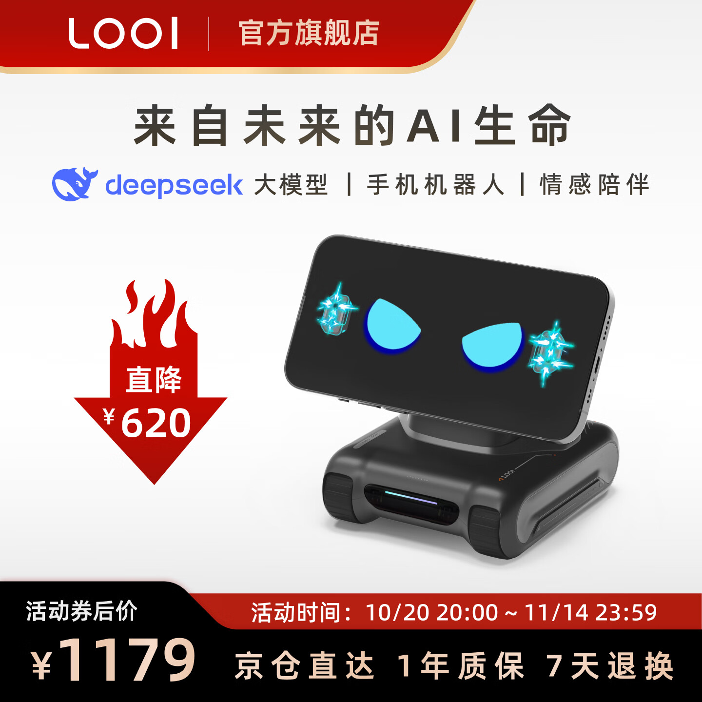 LOOIROBOT LOOI手机机器人 DeepSeek大模型中英文语音对话视觉识别MagSafe无线充电 智能桌面陪伴【太空黑】