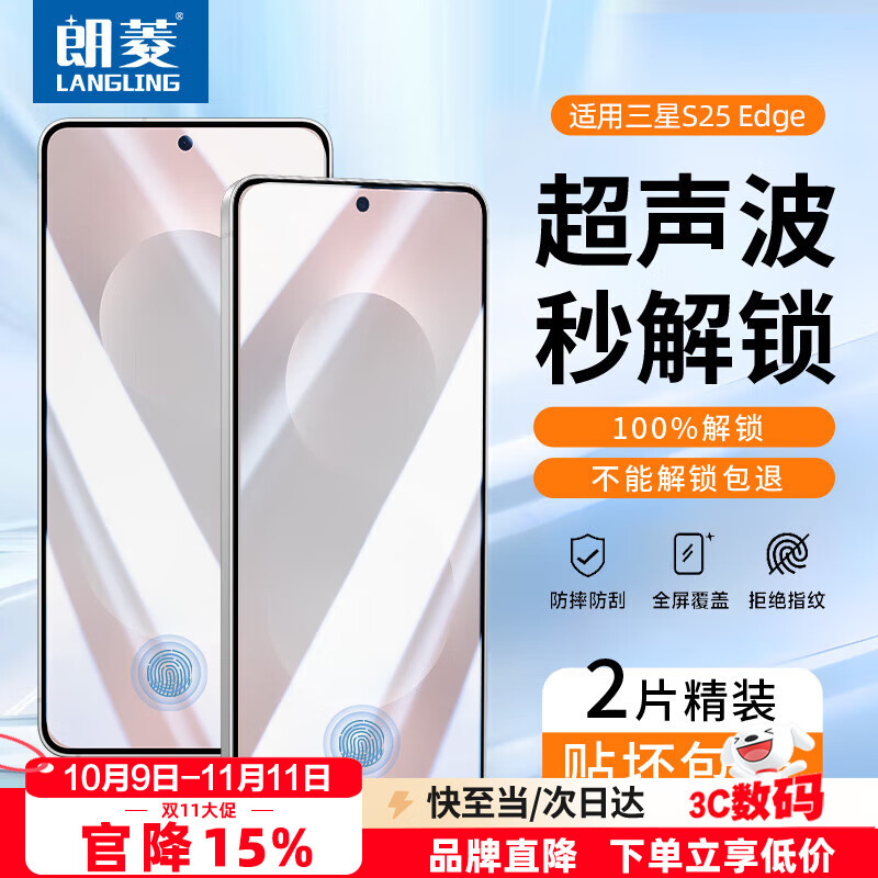 朗菱【2片超声波解锁】适用三星S25 Edge钢化膜 Galaxy s25edge手机膜全屏覆盖高清防摔抗指纹保护贴膜