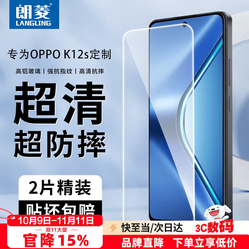 朗菱【2片】适用OPPO K12s钢化膜oppo k12s手机膜高清全覆盖防摔强抗指纹无白边手感顺滑保护贴膜