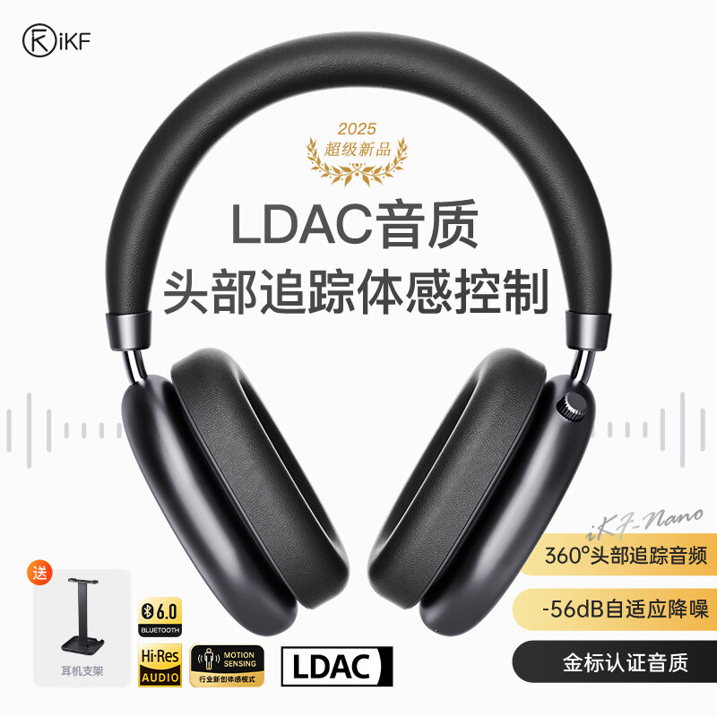 iKF Nano空间音频版【头部追踪-56dB强劲降噪】头戴式主动降噪蓝牙耳机电竞游戏有线无线耳麦雅典灰