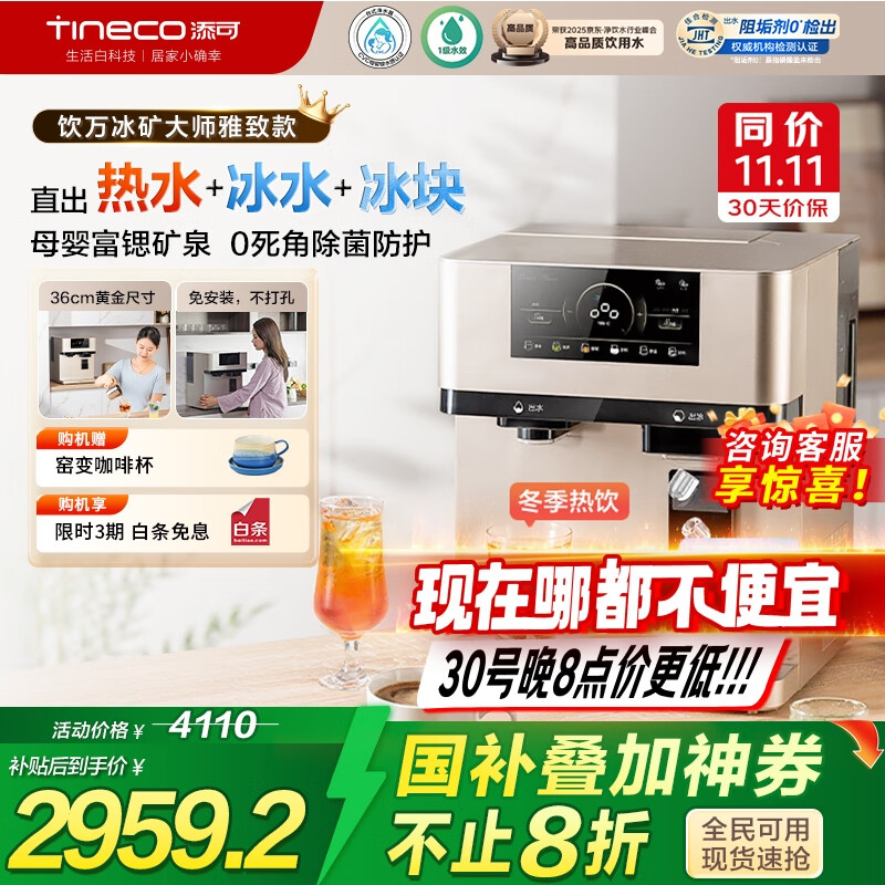 添可冰块加热净水器饮万冰矿大师雅致款家用净水机台式免安装净饮机冷热一体直饮机政府补贴