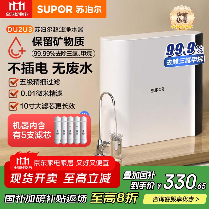 苏泊尔(SUPOR)【政府补贴】净水器家用超滤机滤水器厨下式自来水净化器DU2U3厨房净水器水龙头台式过滤器净水机