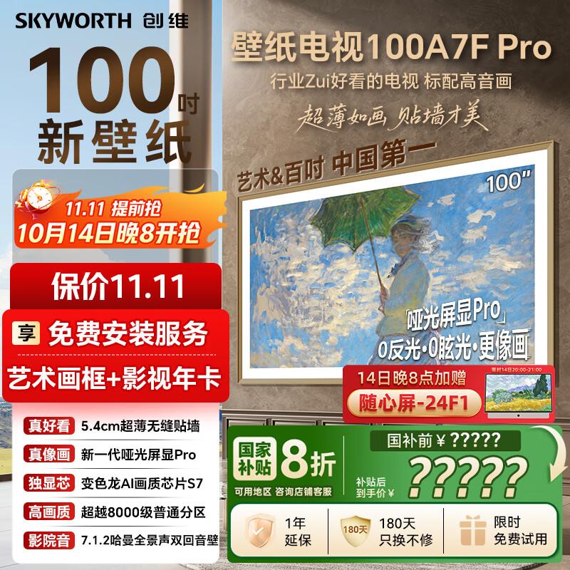 创维壁纸电视A7F Pro 100英寸超薄壁画艺术mini led电视机100吋平板液晶游戏电视以旧换新 国家补贴
