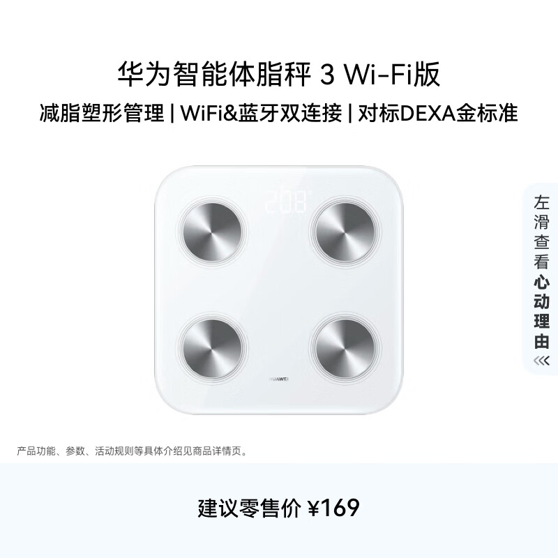 华为智能体脂秤 3 WiFi版 电子秤体重秤家用 14项身体数据/WiFi蓝牙双连接雅致白