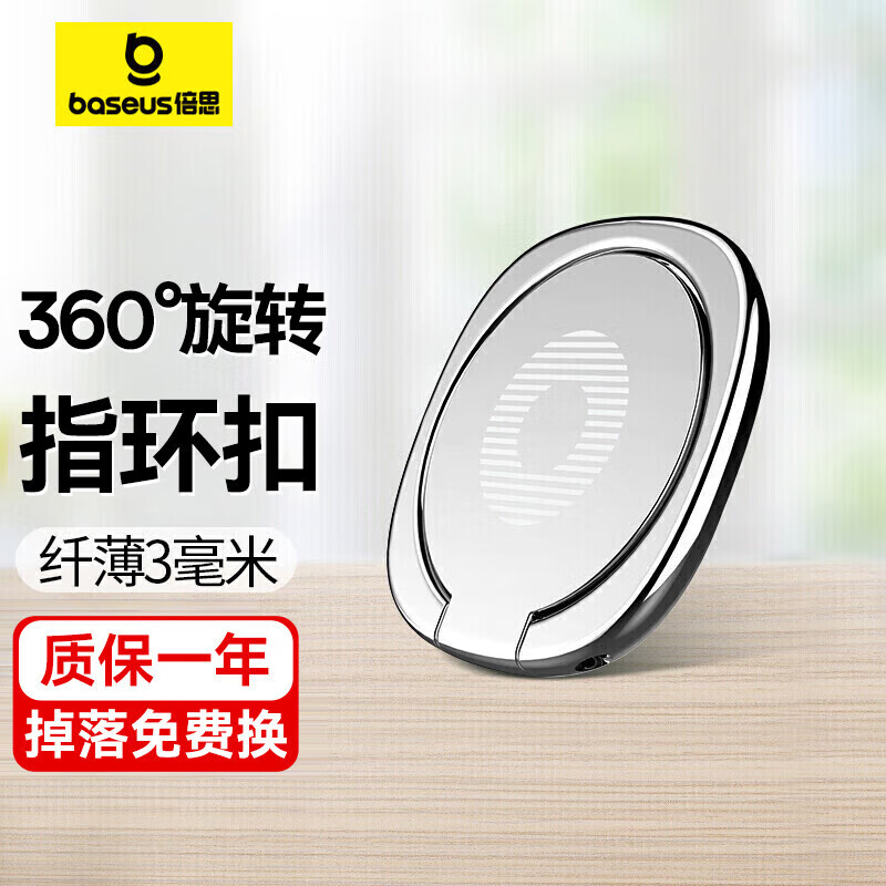 倍思 手机指环扣 手机支架金属桌面 直播超薄环扣支撑后背懒人手机扣360度旋转 银