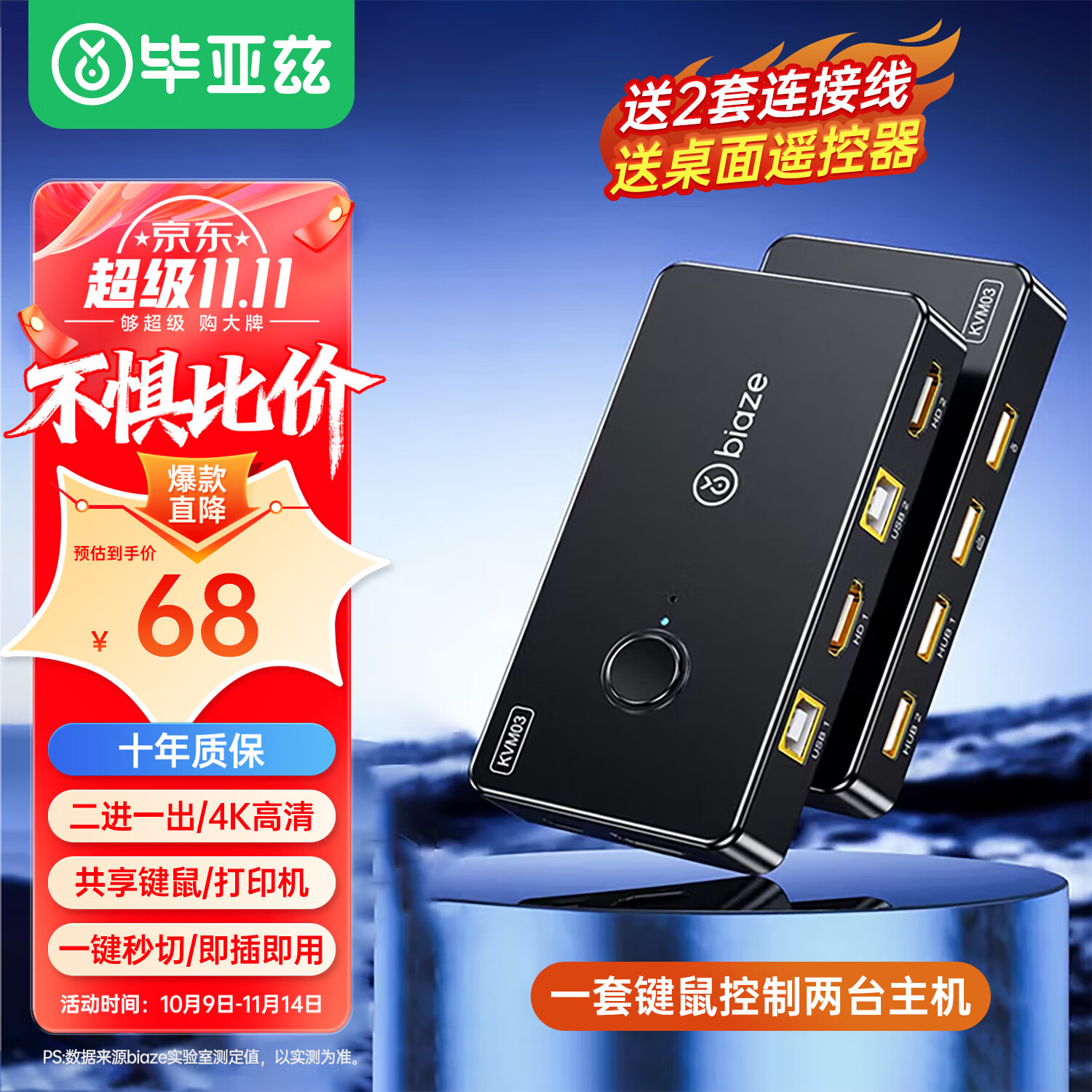 毕亚兹 HDMI KVM切换器二进一出切屏器2.0版 2进1出4K高清 键盘鼠标打印机共享器 两台电脑共享显示器