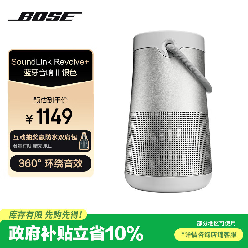 Bose【政府补贴】SoundLink Revolve+蓝牙音响II 银色 360度环绕防水电脑桌面音响大水壶二代