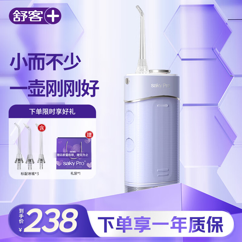 舒客冲牙器洗牙器水牙线 全身水洗伸缩便携 大容量水箱 3种专业喷嘴H5 星云紫 情人节生日礼物中秋礼盒