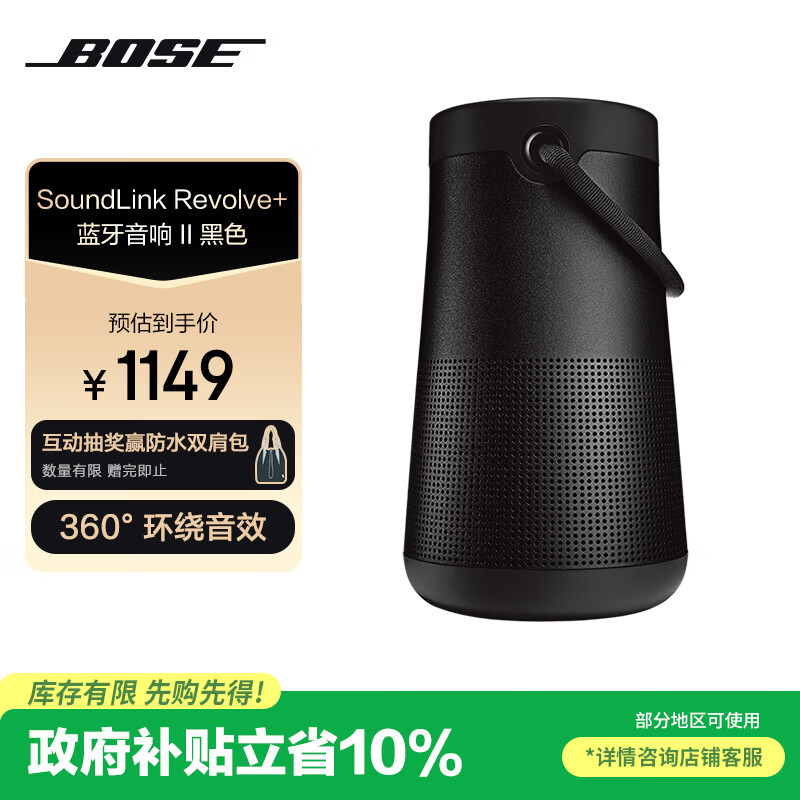 Bose【政府补贴】SoundLink Revolve+ 蓝牙音响II黑色 360度环绕防水电脑桌面音响大水壶二代