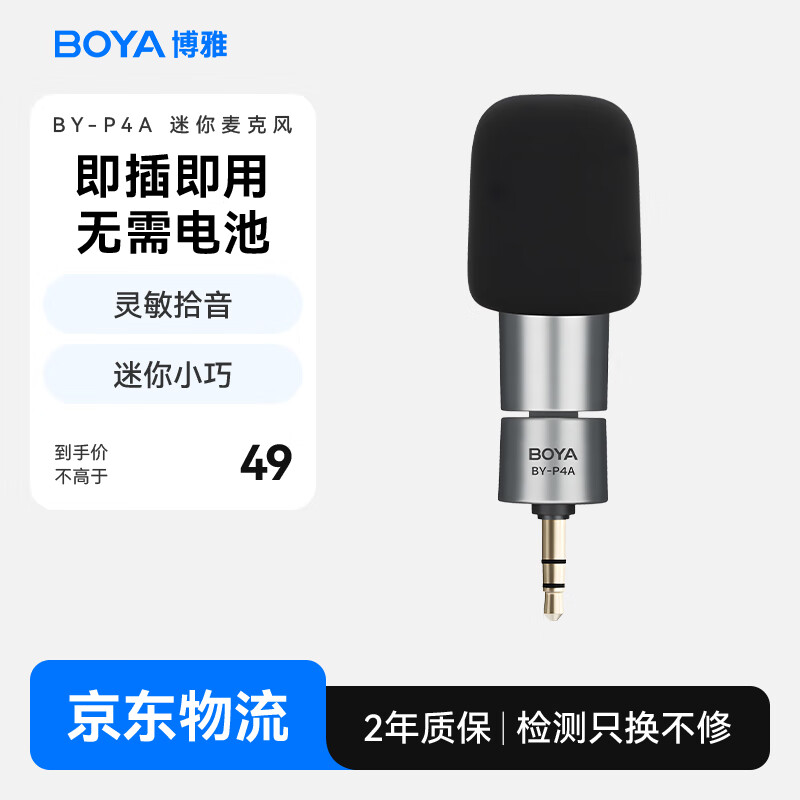 BOYA 博雅麦克风P4A相机3.5mm直插式迷你麦克风 单反运动相机户外vlog短视频收音麦录音笔外接小话筒