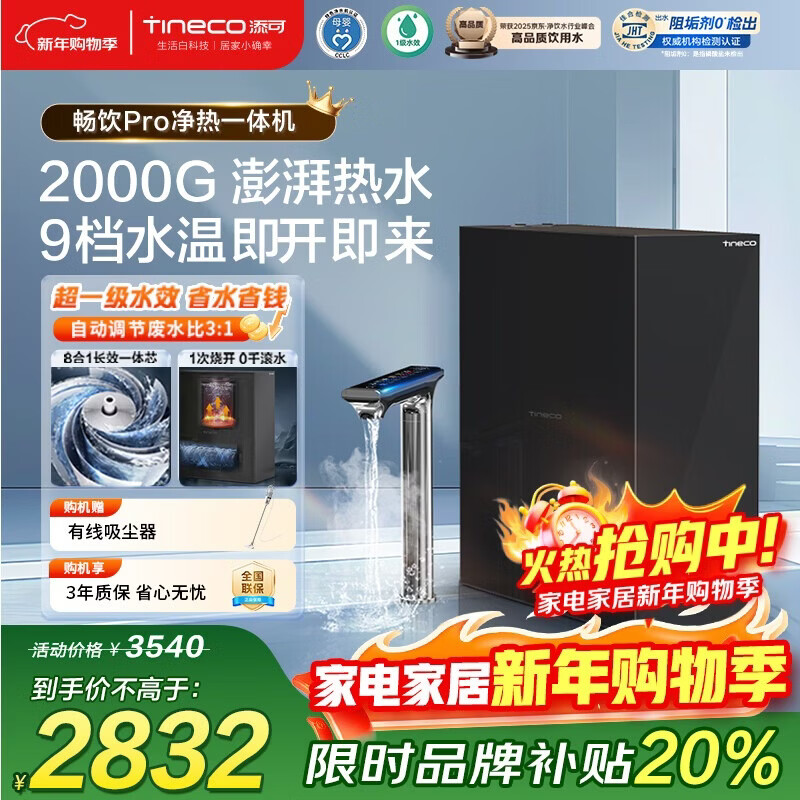 添可加热净水器饮万畅饮Pro直饮机净热一体机1000G通量2000G大流速厨下式家用净饮机反渗透
