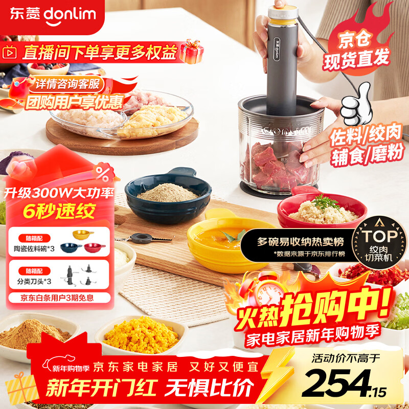 东菱(Donlim)绞肉机家用辅食机 多功能碎肉切菜 磨粉料理机 套娃收纳佐料机可剥蒜DL-5028玻璃款