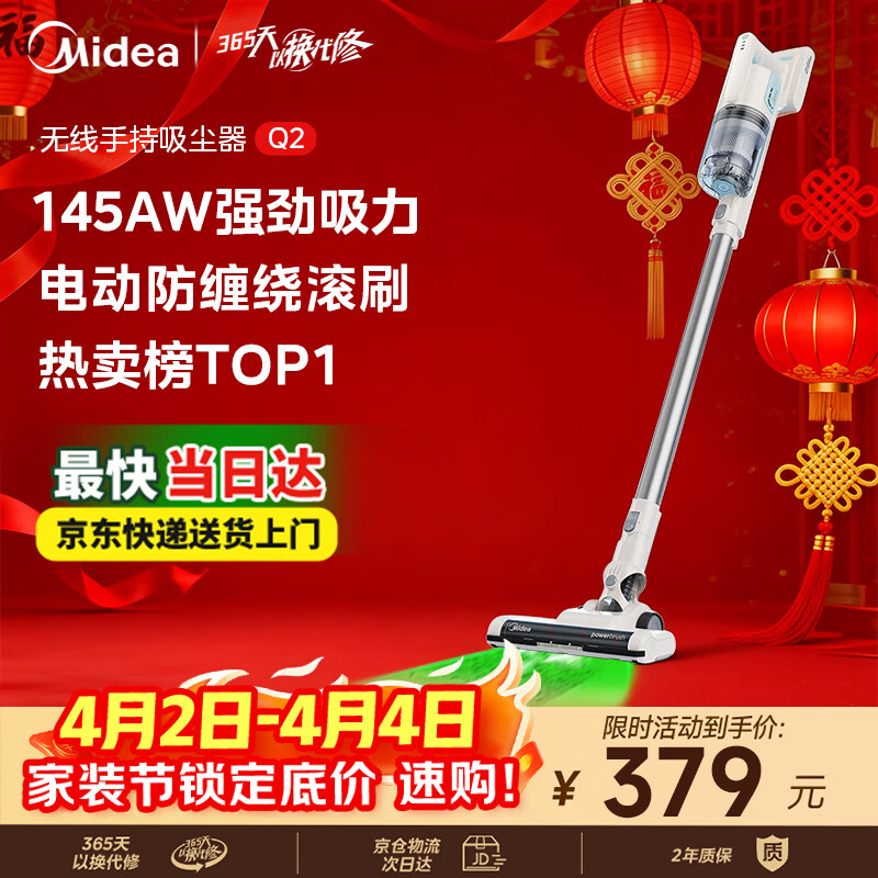 美的(Midea)无线吸尘器家用吸尘器家用宠物手持吸尘器大吸力轻量车载长续航地毯猫毛狗毛吸毛器【爆款升级】Q2