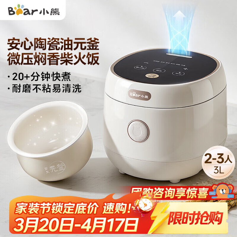 小熊(Bear)电饭煲 2-3人陶瓷油不粘电饭锅 一键快煮智能预约耐磨多功能米饭锅3L DFB-C30L3