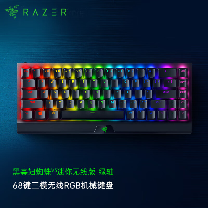 雷蛇(Razer)黑寡妇蜘蛛V3迷你无线版 68键 机械键盘 无线蓝牙有线3种连接模式 RGB灯效 游戏电竞 绿轴