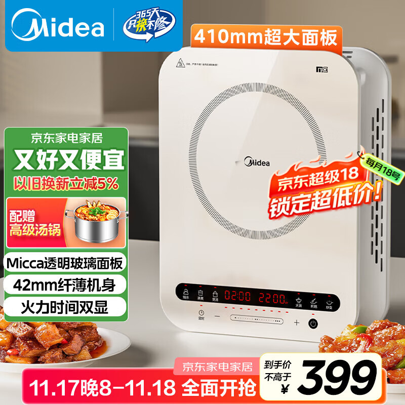 美的(Midea)电磁炉电陶炉 家用2200W大功率 恒匀火加热 电磁灶火锅爆炒定时电磁炉套装政府补贴 C22-Micca705