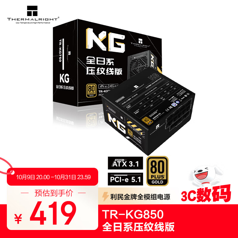 Thermalright(利民) 额定850W TR-KG850 全日系压纹线版 ATX3.1电源 金牌电源原生PCIE5.1全模组电源全日系电容