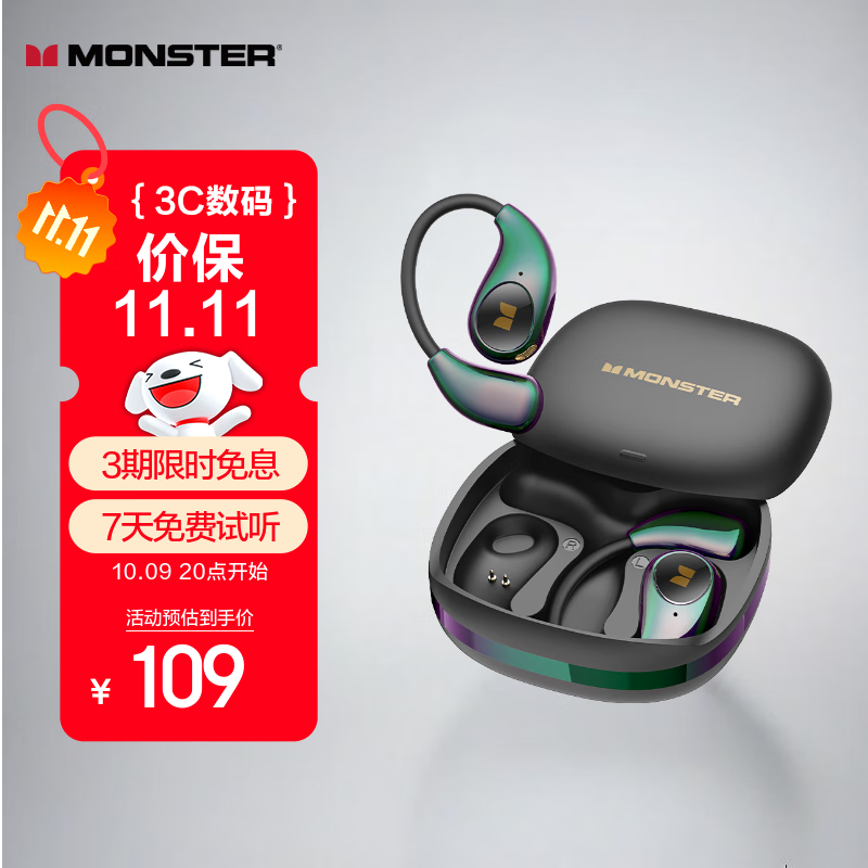 魔声(MONSTER)AC510蓝牙耳机挂耳式运动耳机通话降噪蓝牙6.0超长续航七彩电镀滑盖耳机 极光黑