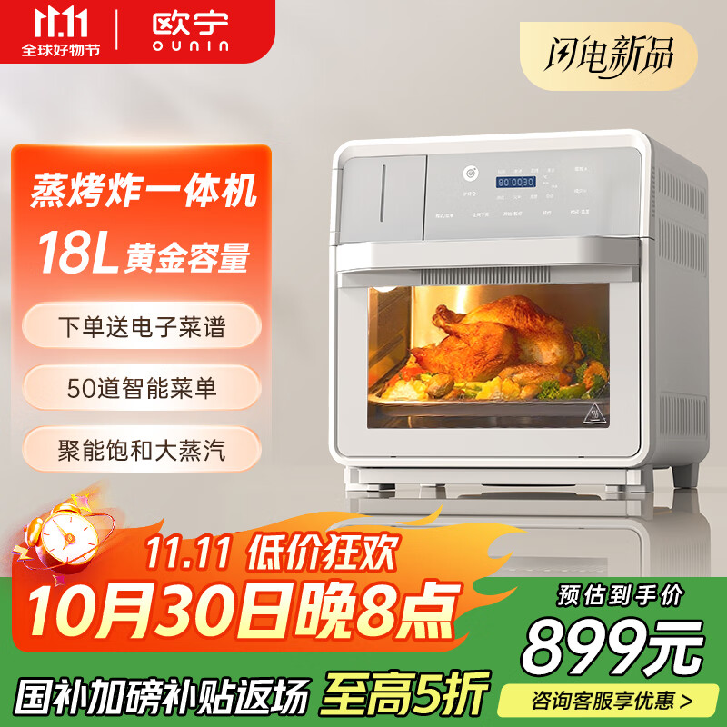 欧宁(OUNIN)小考拉蒸烤箱 台式烤箱蒸炸炉空炸18L小容量电烤箱 蒸烤炸一体机多功能50项菜单