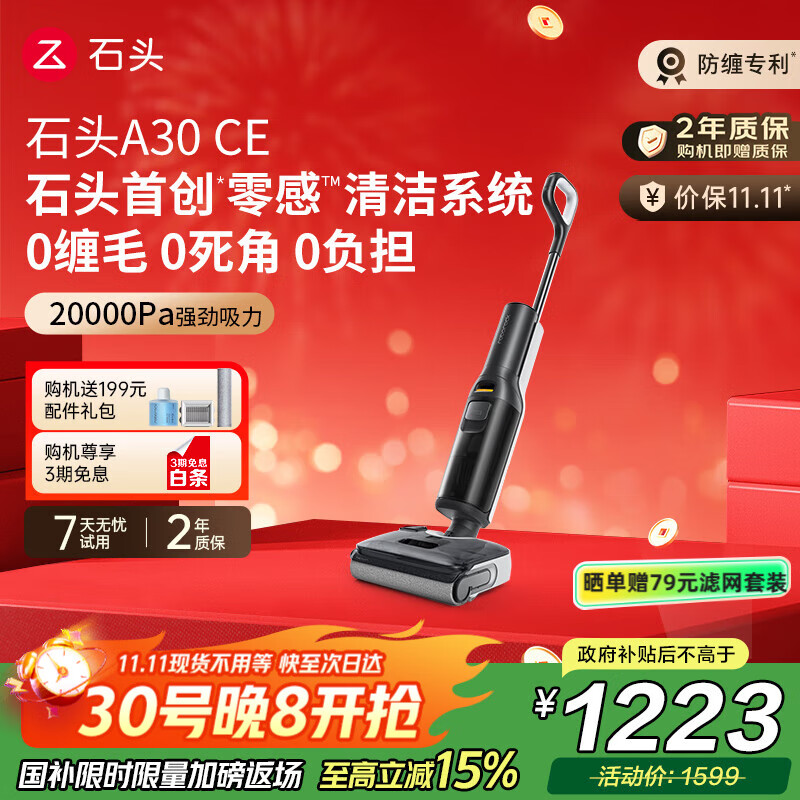 石头A30 CE洗地机【高温除菌0缠毛超薄躺平】A30Pro CE系扫地机器人自动清洗洗拖吸一体吸尘器国家补贴