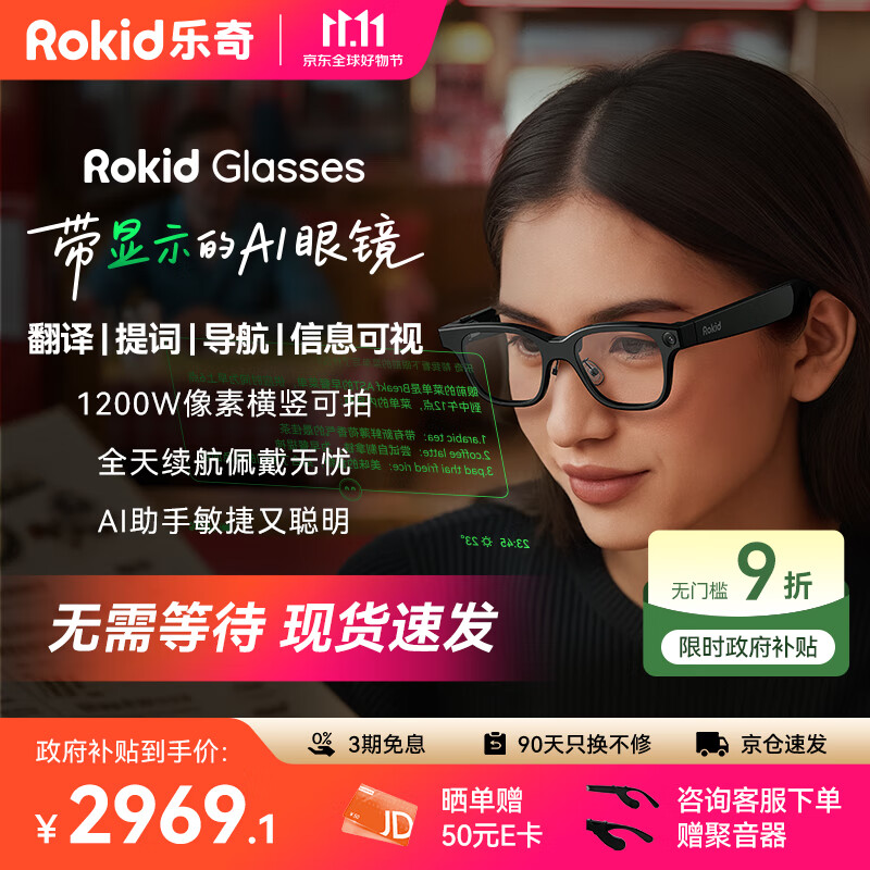ROKID Glasses乐奇AI眼镜 【现货发售 限时9折】智能眼镜 AR眼镜 AI智能助手 拍摄眼镜 翻译提词器导航