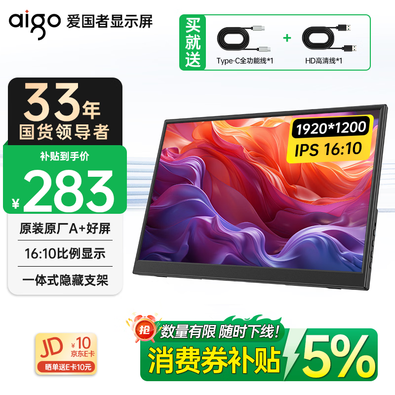 爱国者aigo14英寸便携显示器拓展屏 电脑显示器手机笔记本 副屏Type-C一线通