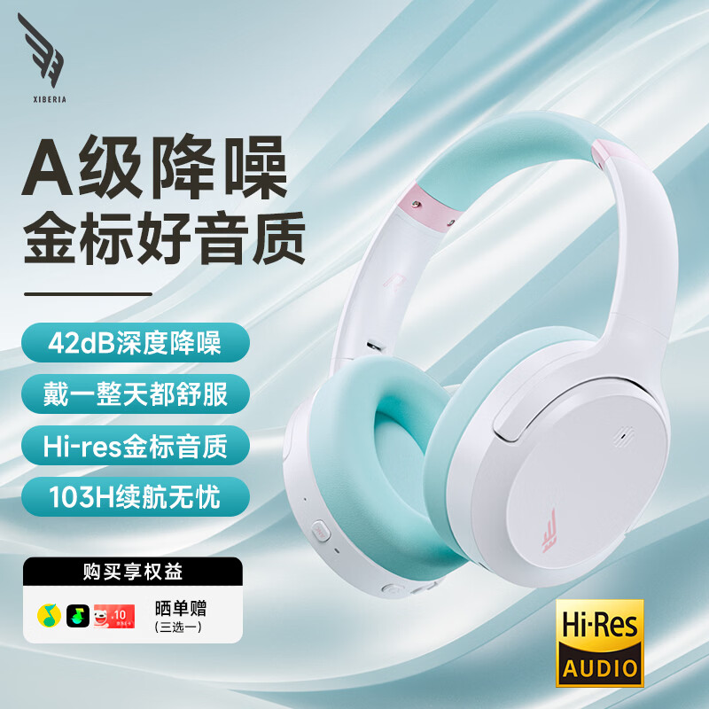 西伯利亚(XIBERIA)西伯利亚 DM02主动降噪金标认证无线头戴式蓝牙耳机超长续航降噪音乐游戏运动耳机天青白全网热销