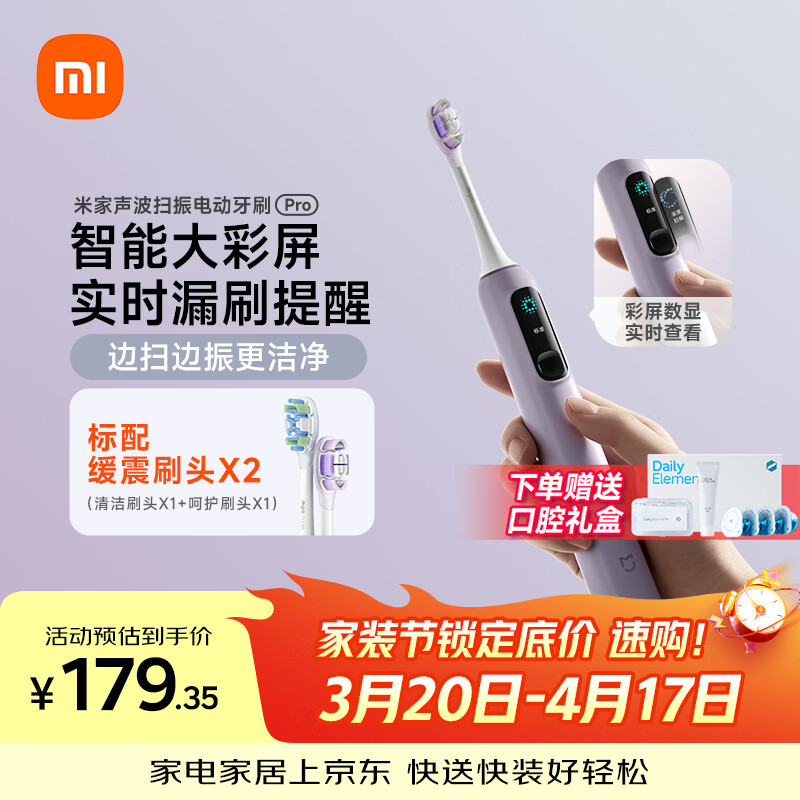 米家小米声波扫振电动牙刷Pro 彩屏数显提醒180天续航智能分面扫振生日送男友女友礼物