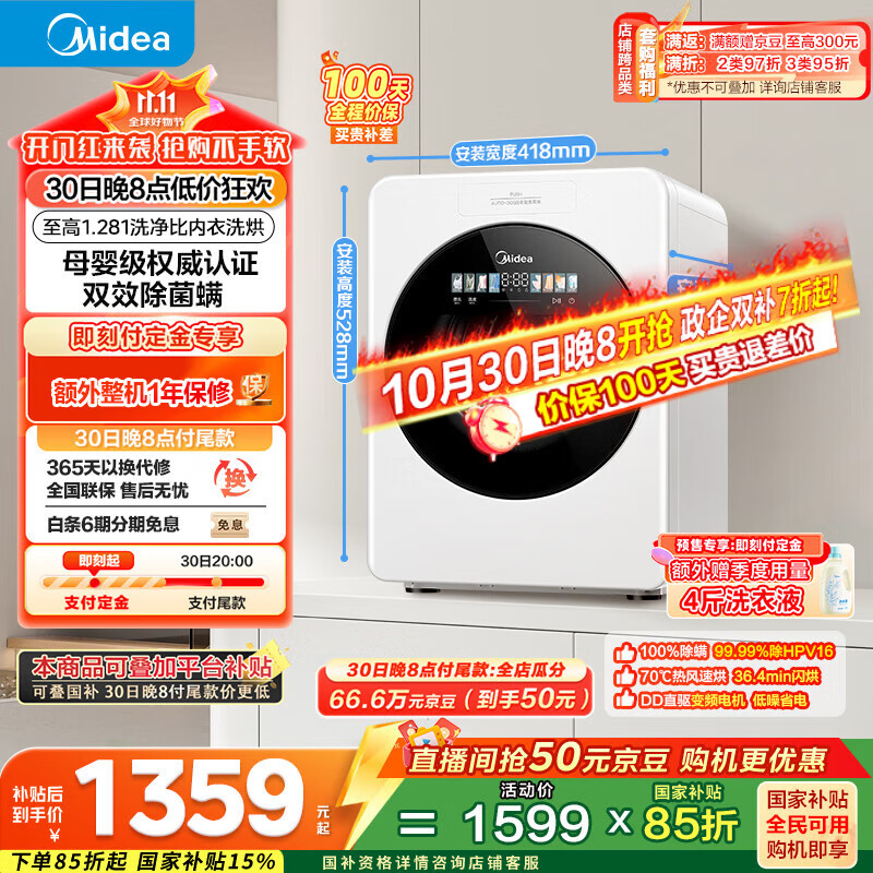 美的(Midea)内衣洗衣机小型洗烘一体 MND12VD1E 云初Y2 懒人洗衣机变频 1.281洗净比 双效除菌螨 家电国家补贴